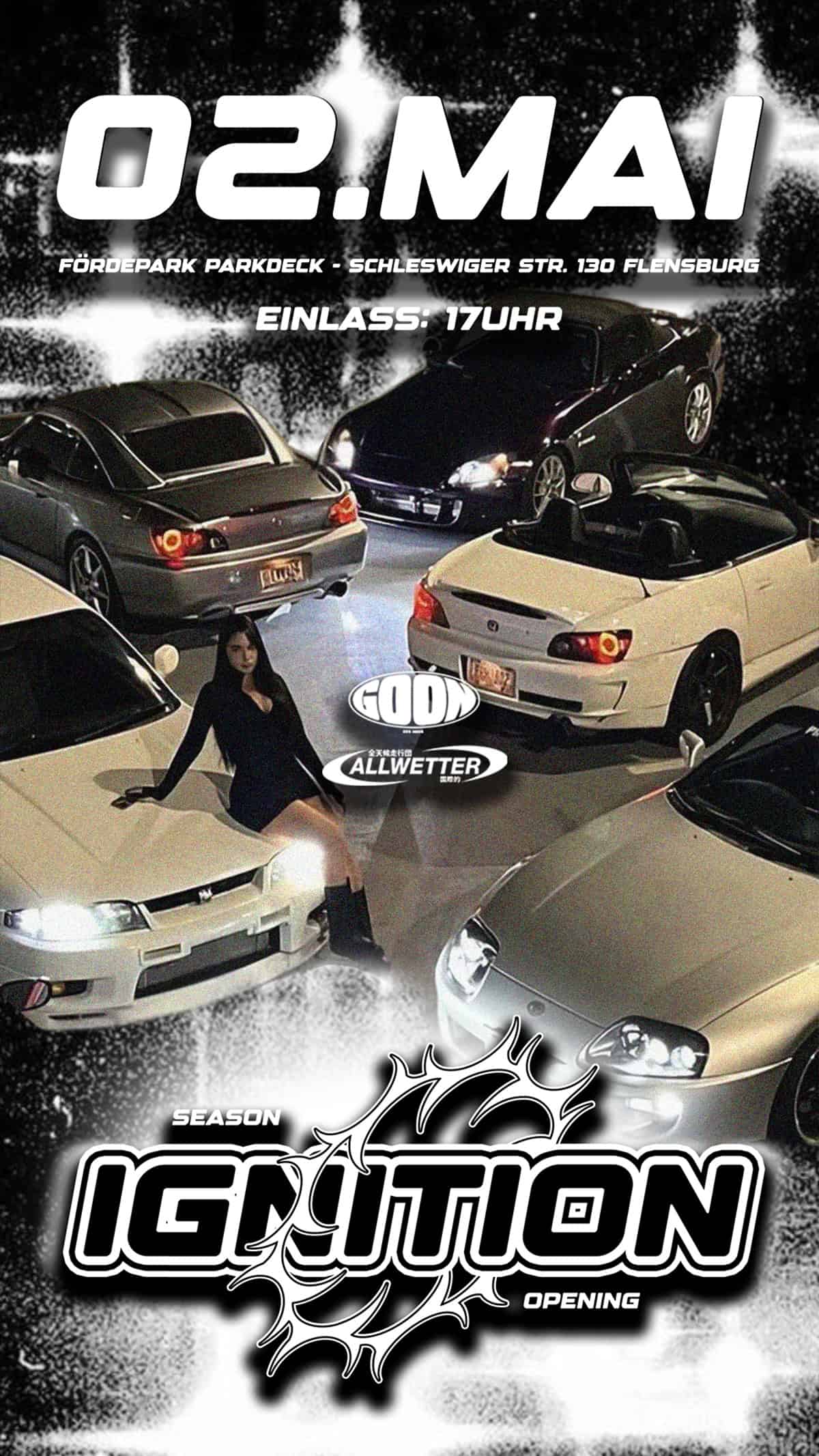 Am 02. Mai 2026 starten Allwetter und Goon das inzwischen sechste Event im Fördepark Flensburg. Erlebt echtes NFS-Underground-Feeling mit der besten Car-Community des Nordens.