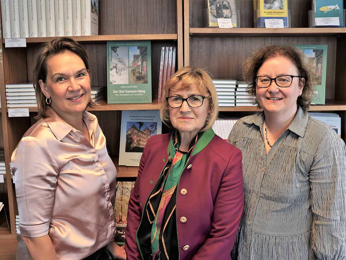 Vielleicht hat der eine oder andere Leser schon einmal von ihm gehört, doch wo er genau sein Zuhause hat, seine Geschichte von der Gründung bis heute, seine Ziele und vielfältigen Aktivitäten – das möchten wir Ihnen in diesem Artikel nahebringen. Sein im Vereinsregister eingetragener Name lautet „Gesellschaft für Flensburger Stadtgeschichte e. V.“. Wir trafen uns mit Vereinsvertreterinnen in der Geschäftsstelle des Vereins im hiesigen Rathaus, im Untergeschoss, Raum U12. Am Gespräch nahmen als 1. Vorsitzende des Vereins Dr. h.c. Swetlana Krätzschmar, Dr. Jessica von Seggern als Schriftführerin sowie Doreen Lutomski als Kassenwartin des Vereins und als Vertreterin der Geschäftsstelle des Vereins teil.