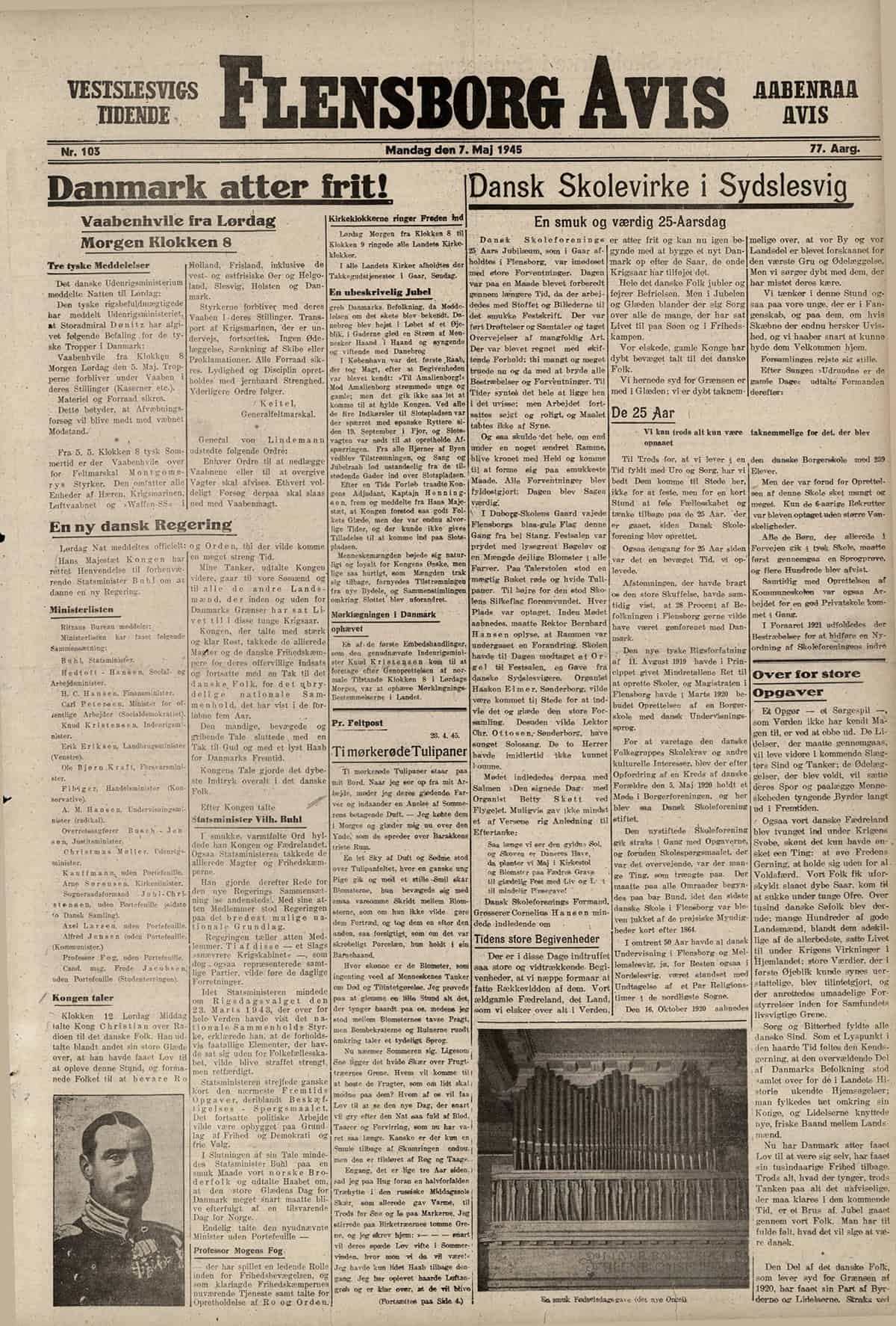 Da die Dönitz-Regierung nur wenige Kilometer entfernt regierte, berichtete man bei „Flensborg Avis“ in den nächsten beiden Wochen vorsichtiger. Das Blatt erschien aber durchgängig. Der Redaktion wurde von der britischen Militärregierung eine anti-nationalsozialistische Haltung attestiert. Sie blieb eigenständig, Lorens Peter Christensen machte als Chefredakteur weiter. Die „Flensborg Avis“ war die einzige Zeitung in der britischen Zone, die mit vier statt nur zwei Seiten erscheinen durfte – und das an sechs Tagen die Woche.