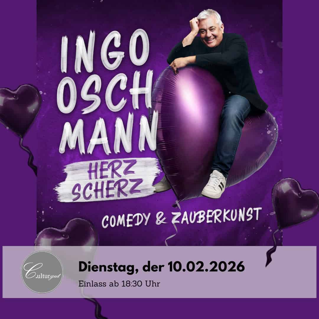 Der beliebte Comedian Ingo Oschmann ist zurück und bringt mit seinem neuen Stand-up Comedy Programm „HerzScherz“ frischen Wind auf die Bühnen Deutschlands! Nach zahlreichen erfolgreichen Auftritten und begeisterten Zuschauern in den letzten Jahren, lädt Oschmann sein Publikum ein, gemeinsam mit ihm in die Welt der humorvollen Herzensangelegenheiten einzutauchen.