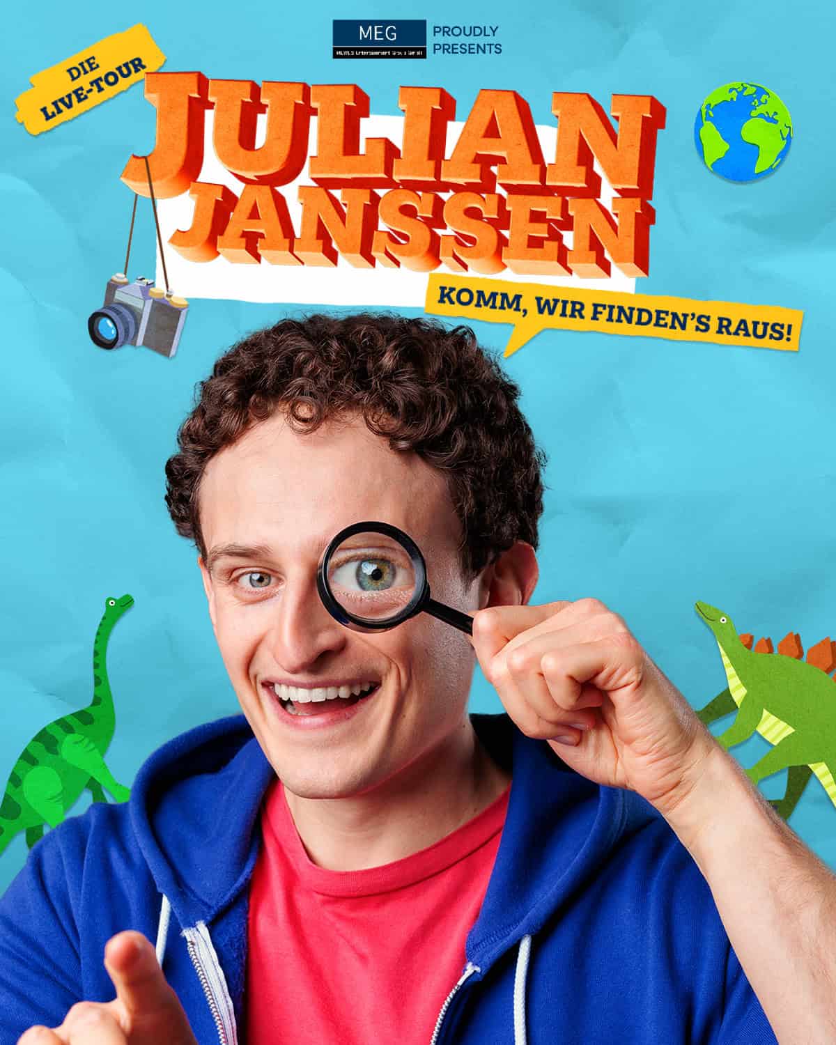 Für seine kleinen Wissens-Fans nimmt Julian naturwissenschaftliche Phänomene unter die Lupe, geht aber auch ganz normalen alltäglichen Fragen nach. Ein besonderer Höhepunkt der Show ist Julians Dino-Abenteuerreise in den USA: Mit drei analogen Kameras und einem Zelt im Gepäck hat er sich im letzten Jahr auf die Suche nach echten Dinosauriern gemacht. Dabei nimmt er das Publikum mit und enthüllt, was er auf seiner Expedition entdeckt hat.