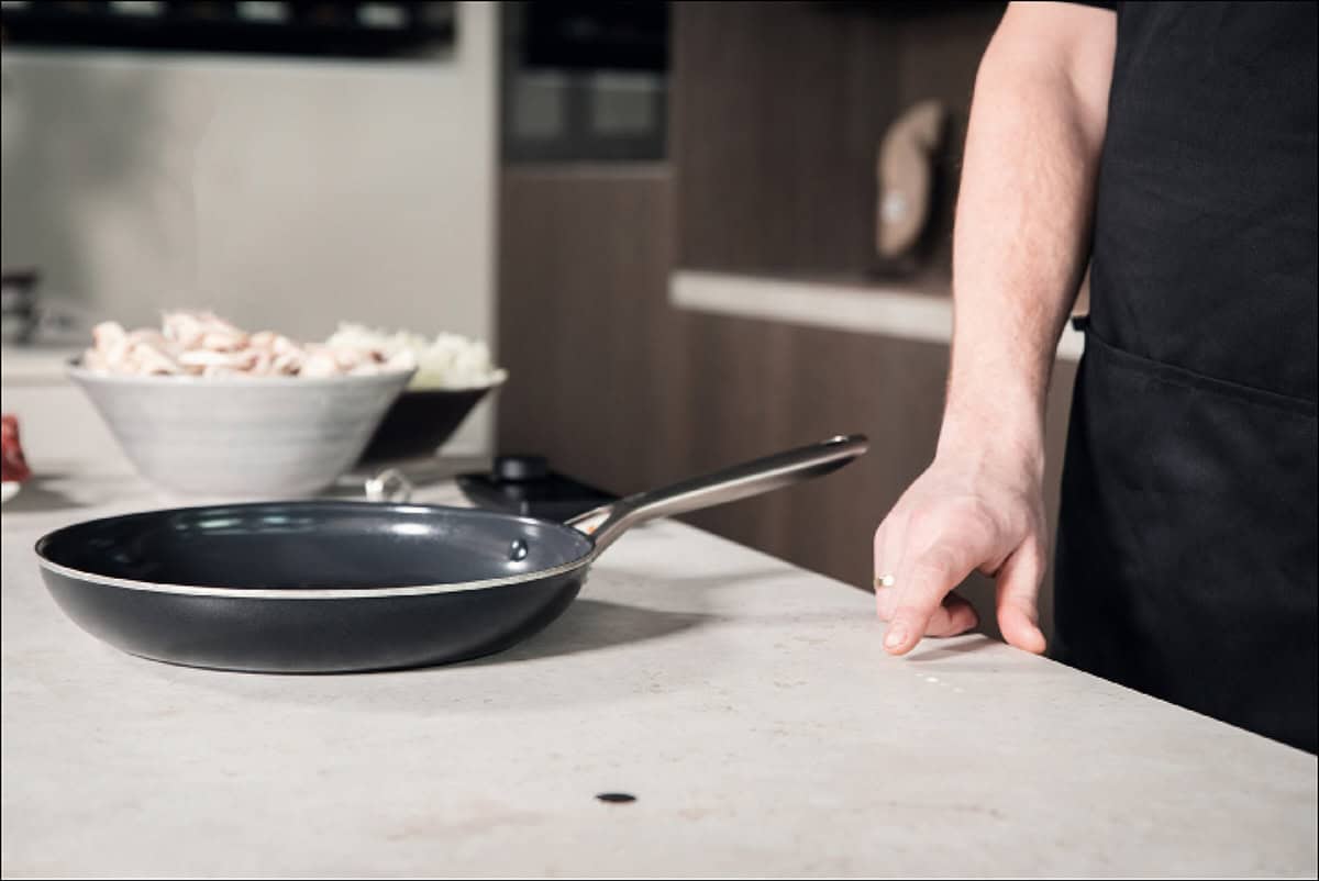 Ein Beispiel für dieses neue Denken ist das Induktionskochfeld Novy Undercover. Es verschwindet vollständig in einer hitzebeständigen Dekton-Arbeitsplatte und ist im ausgeschalteten Zustand unsichtbar. Gekocht wird direkt auf der Oberfläche – ohne Kompromisse bei Funktionalität und Sicherheit. Das unsichtbare Kochfeld wird über eine Fernbedienung intuitiv gesteuert, bietet für jede Kochzone großzügigen Leistungsreserven und ist mit einem umfangreichen Sicherheitskonzept ausgestattet. Wer möchte, kombiniert das unsichtbare Kochfeld mit einem flächenbündigen Dunstabzug in der Küchendecke. So bleibt der Blick frei und die Wohnlichkeit unangetastet.