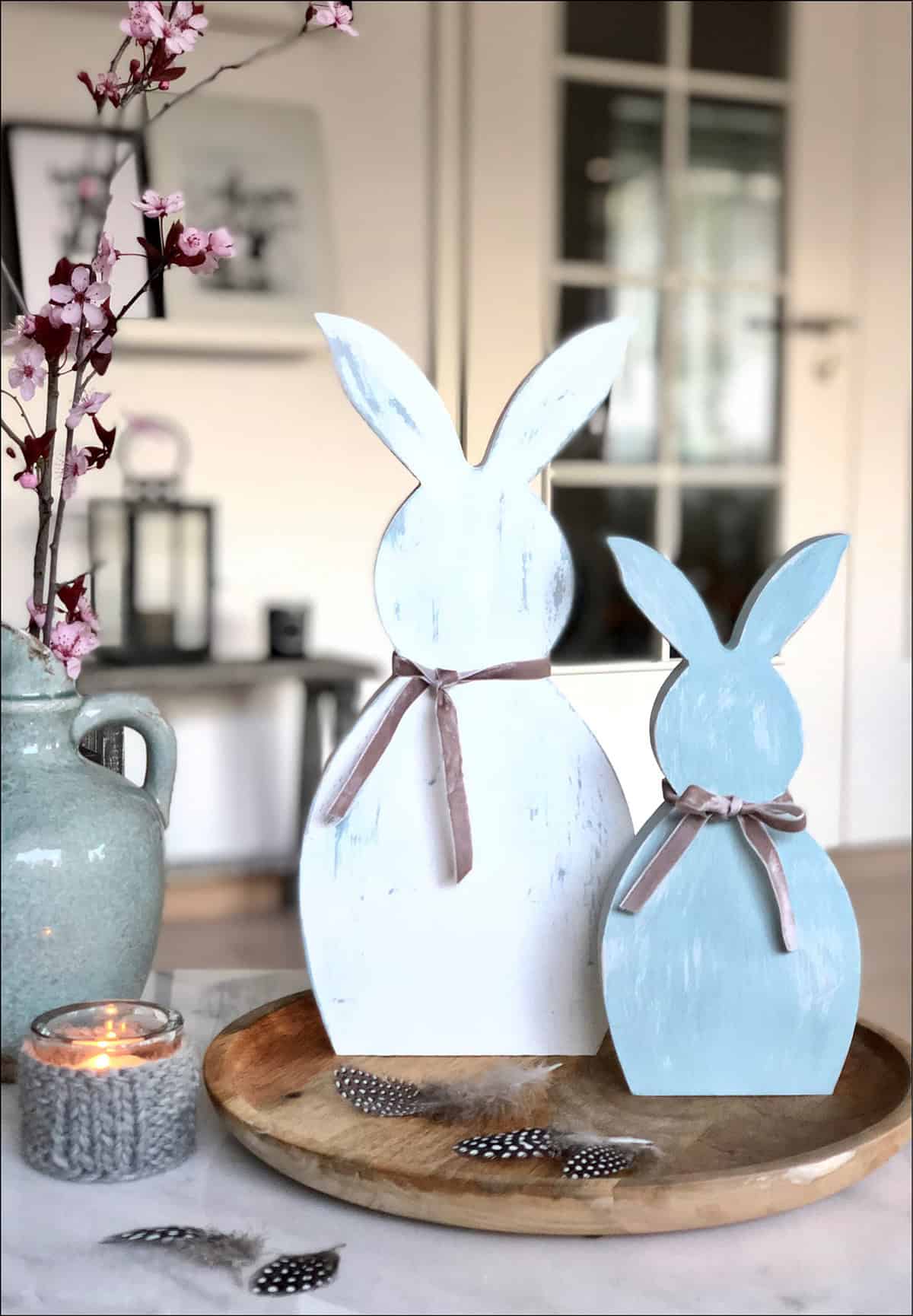 Und auch bei Deko-Elementen wird sich am Einrichtungsstil der Skandinavier orientiert. Für die trendige Shabby-Chic-Optik hat sich bei Bastelarbeiten mit Holz die Kombination von Kreidefarbe und Veredlungswachs (beides von Bondex) bewährt. So entstehen mit wenigen Pinselstrichen stylische Osterhasen. Die Verarbeitung ist denkbar einfach: Das unbehandelte Holz einfach mit Bondex Kreidefarbe vollständig anmalen und trocknen lassen. Anschließend folgt eine zweite Schicht in einem anderen Farbton. Nachdem auch diese Farbschicht komplett getrocknet ist, werden Ecken, Kanten und Oberfläche des Holzhasen sanft mit Schleifpapier bearbeitet. So entstehen die beliebten „Used-Look“-Effekte, bei der die untere Farbschicht leicht durchschimmert. Im letzten Schritt wird nun das Veredlungs-Wachs aufgetragen, um den Effekt zu betonen und das Holz gleichzeitig langfristig zu schützen.