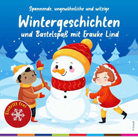 Am Donnerstag, 22.01.2026, erzählt Frauke Lind um 16 Uhr spannende, ungewöhnliche und witzige Geschichten von Schneemännern, Schneegeistern und vielem mehr in der Kinderbücherei. Im Anschluss darf jeder ein Muster aussuchen und etwas Winterliches basteln.