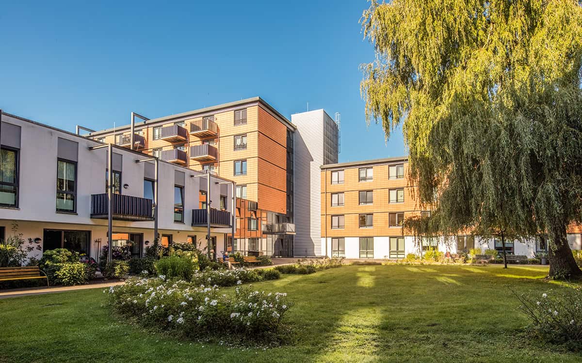 Die Servicehäuser verbinden barrierearme Appartements mit umfassenden Versorgungs- und Pflegeangeboten. Selbst bei hohem Pflegegrad können Bewohnerinnen und Bewohner in den eigenen vier Wänden bleiben, da spezialisierte Pflegekräfte täglich vor Ort im Einsatz sind.
